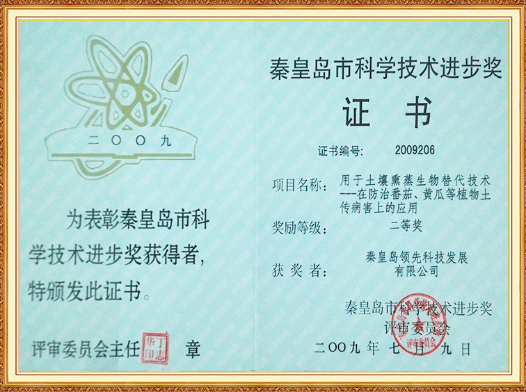 土壤熏蒸在防治番茄、黃瓜土傳病害上的應(yīng)用—秦皇島科學(xué)進(jìn)步二等獎(jiǎng)